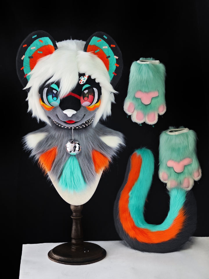Rainbow Cake Bear Kemono Head Fursuit (Gift Handpaws+Tail)