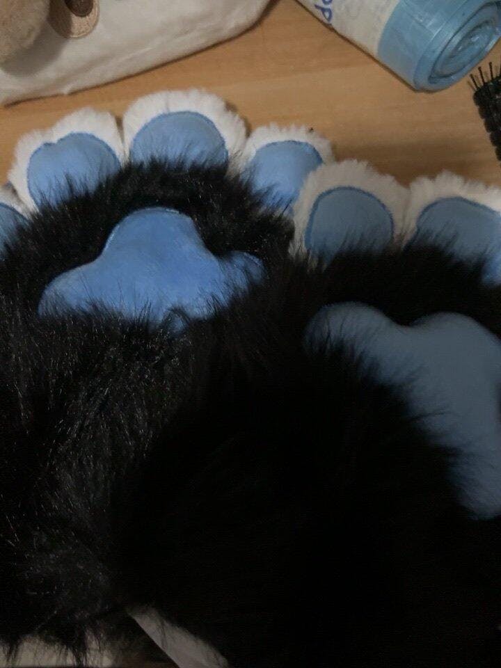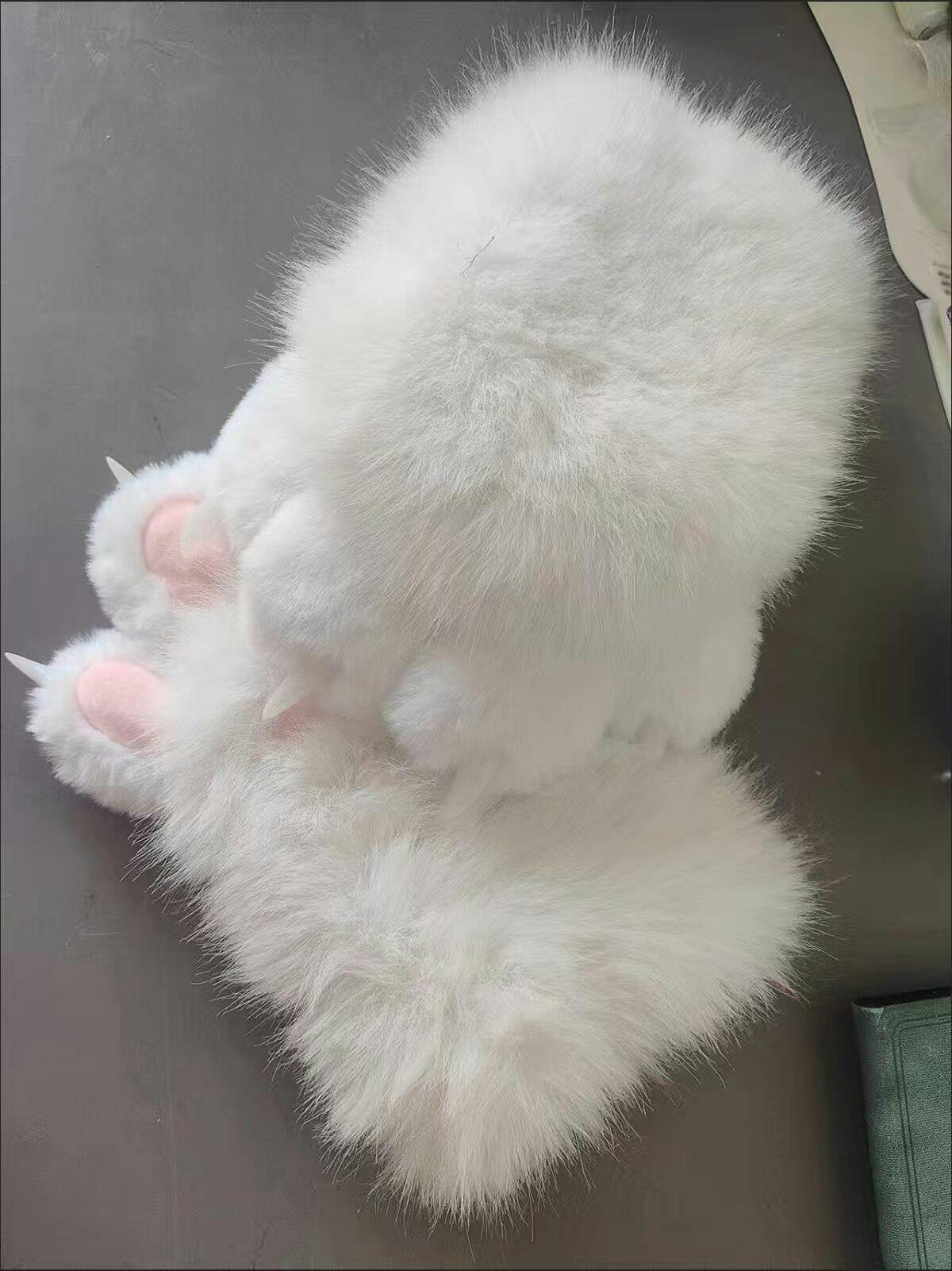 It's a bit thick, so I recommend wearing absorbent socks. But it looks amazing; the toes are clearly defined and the fur is soft. And it wasn't shipped barefoot; it was wrapped in a mesh bag, and the bag itself is of very good quality. You get what you pay for! Meow's quality is really excellent!