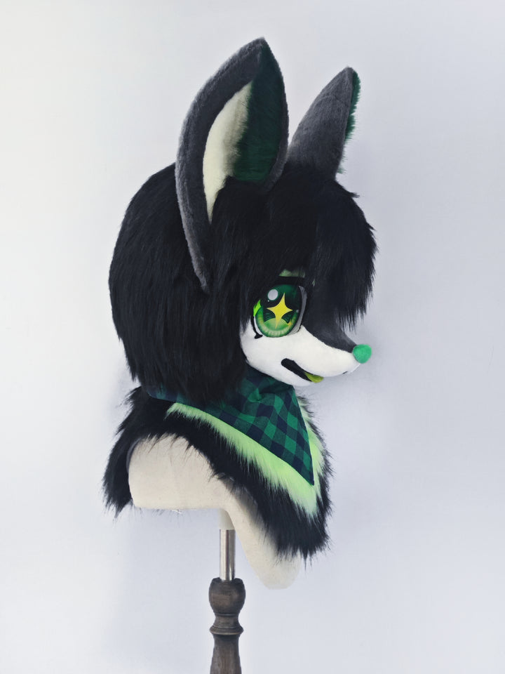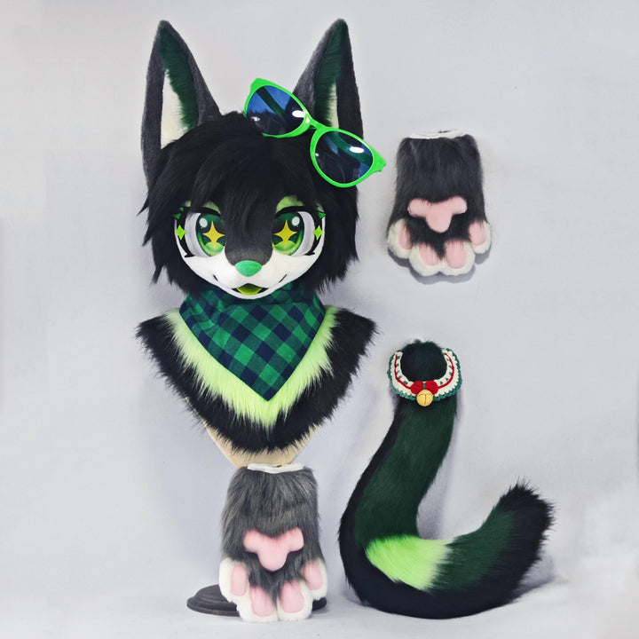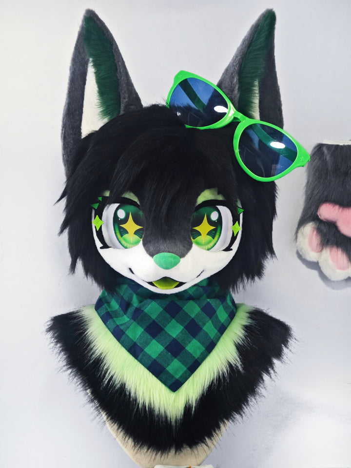 Black Green Wolf Kemono Head Fursuit (Gift Handpaws)