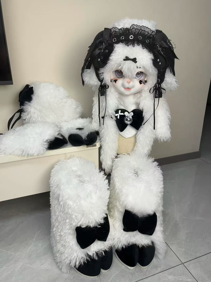 Black Lamb Kig Head Fursuit (Gift Handpaws+Feetpaws+Tail)