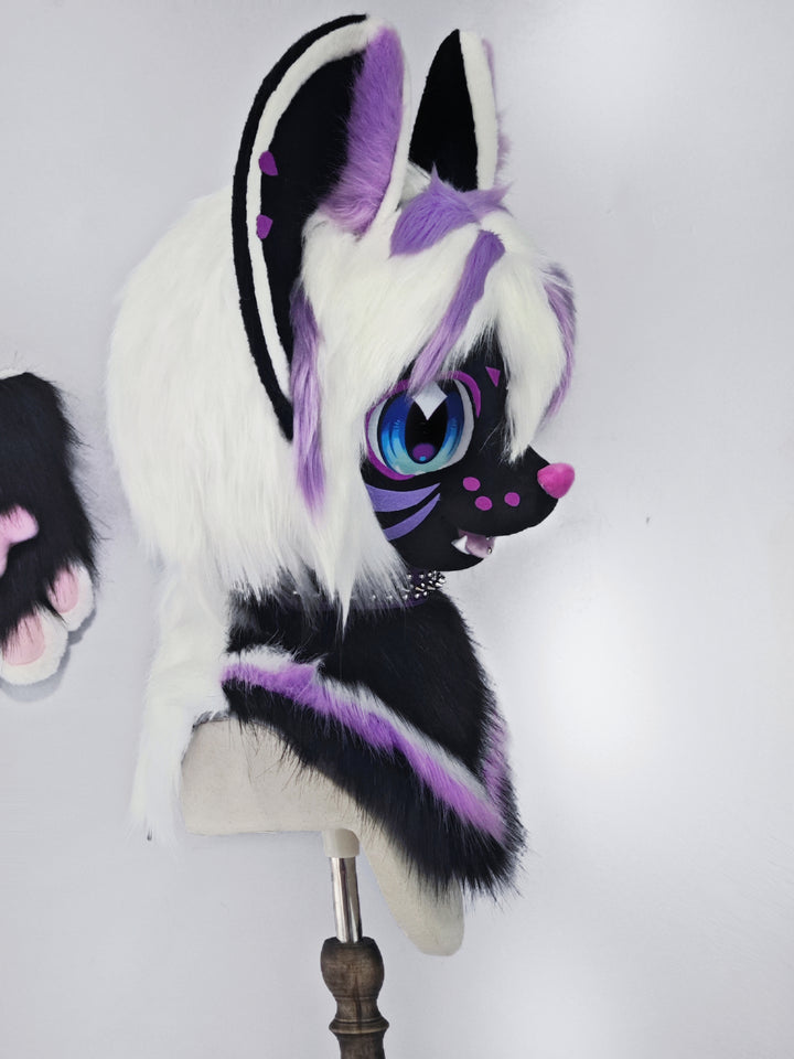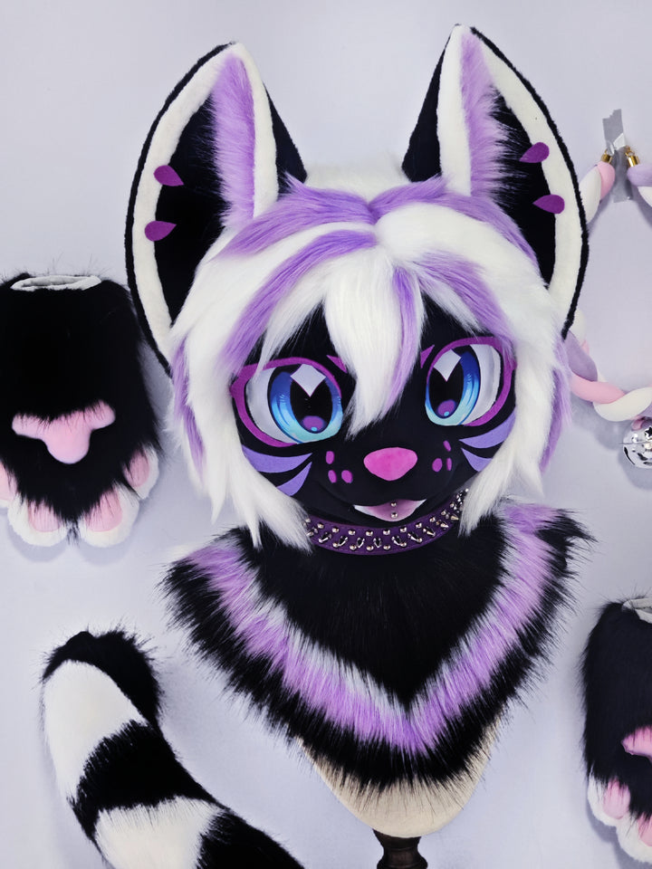 Black Purple Kitten Kemono Head Fursuit (Gift Handpaws+Tail)