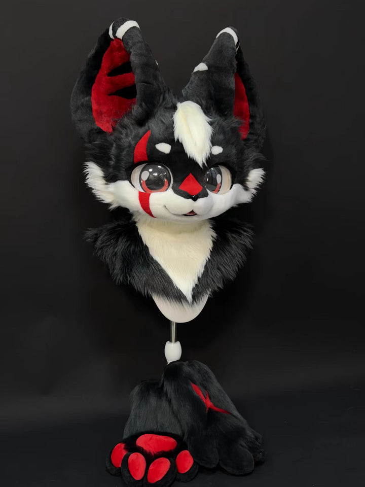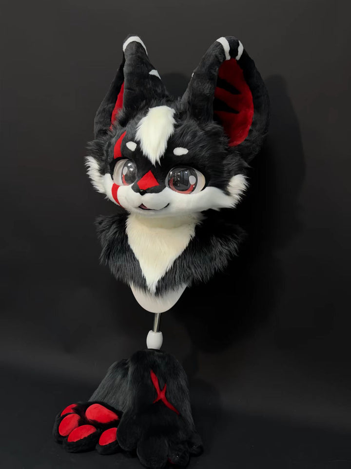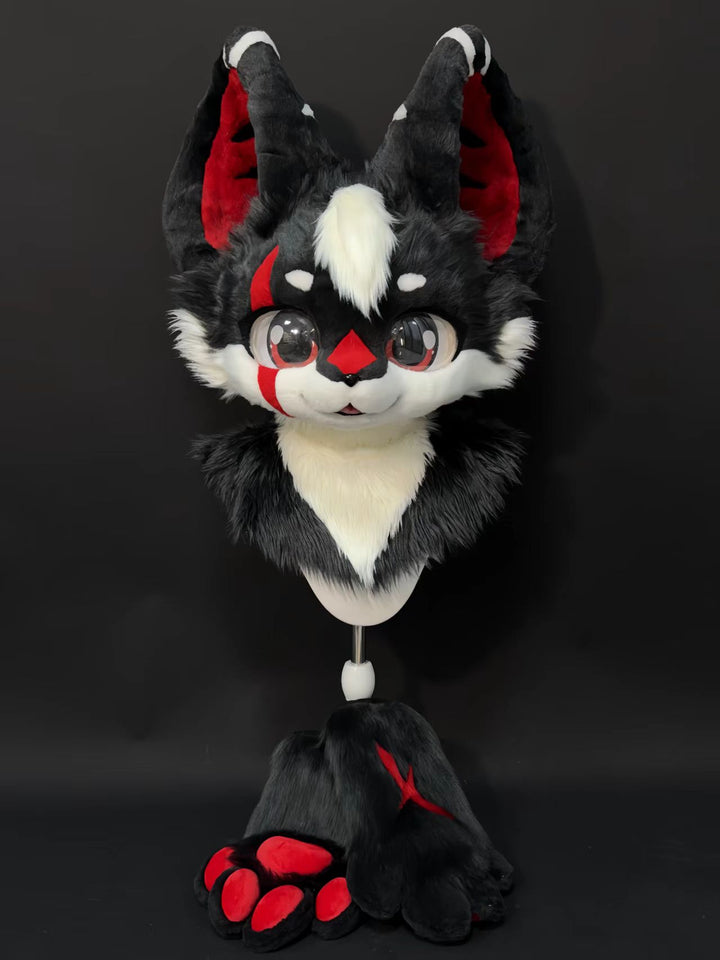 Black Red Wolf Kemono Head Fursuit (Gift Handpaws)