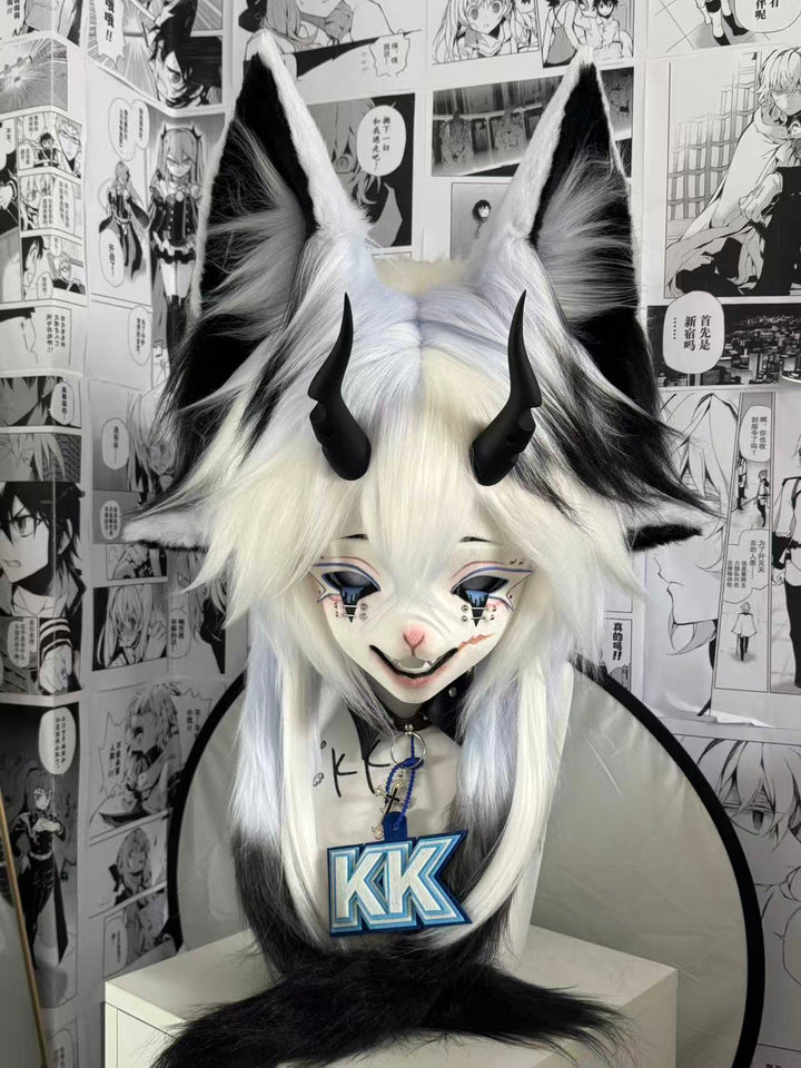 Black White Fox Kig Head Fursuit