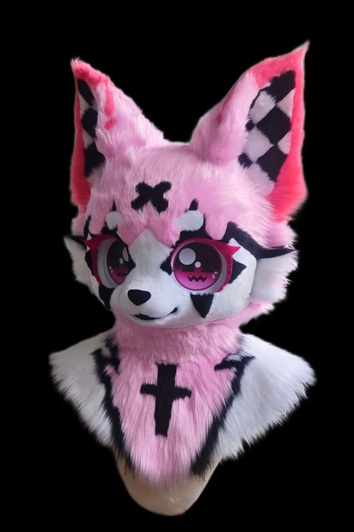 Black White Plaid Kitten Kemono Head Fursuit (Gift Handpaws)