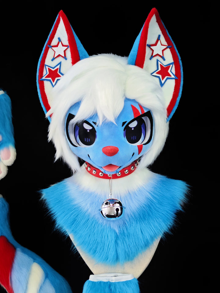 Blue Red Kitten Kemono Head Fursuit (Gift Handpaws+Tail)