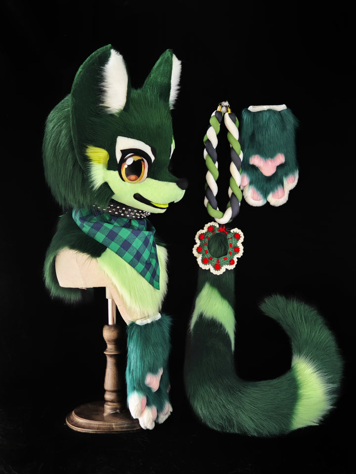 Christmas Wolf Kemono Head Fursuit (Gift Handpaws+Tail)