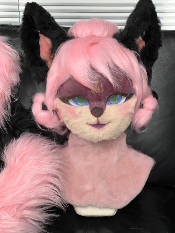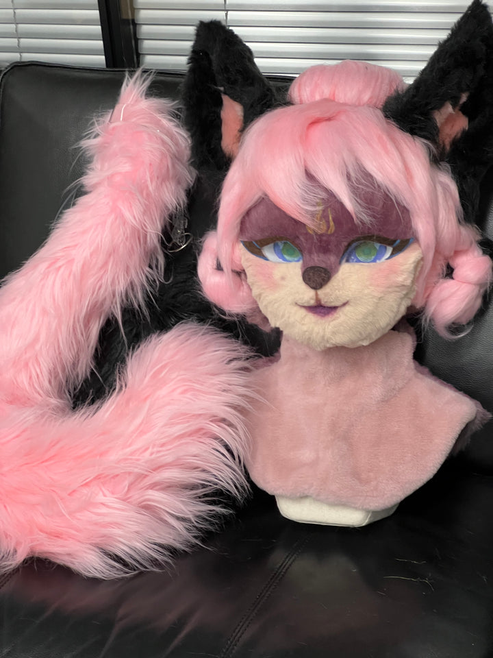 Colorblocked ball-head fox Kemono Fursuit(Head+tail+handpaws+neck)