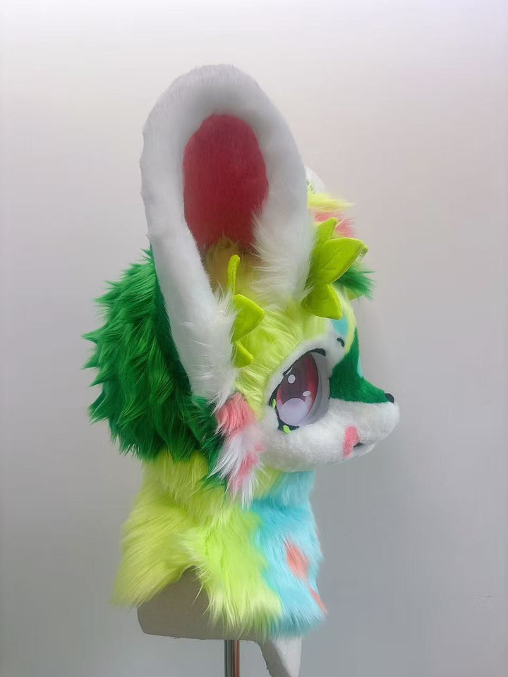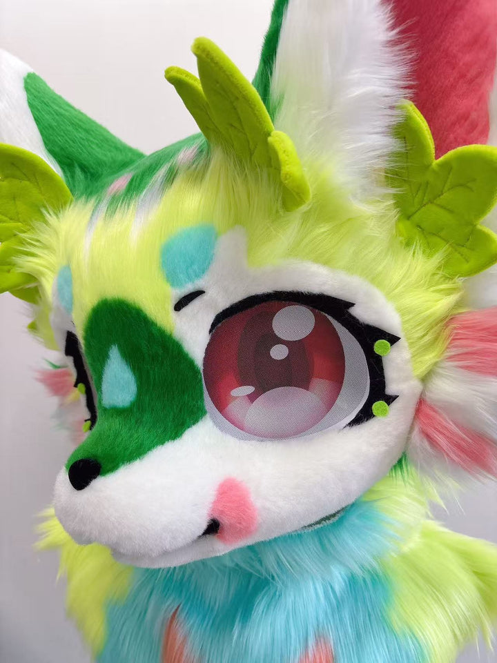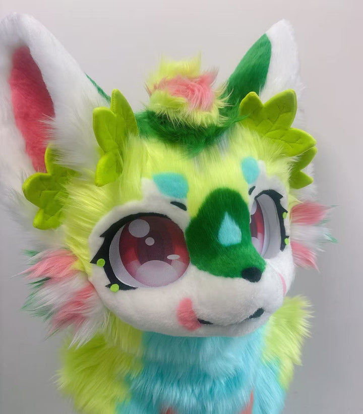 Green Leaves Dragon Kemono Head Fursuit (Gift Handpaws+Fan)
