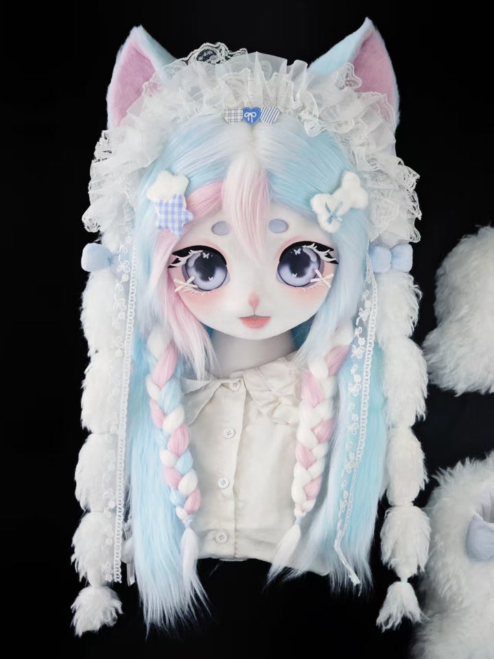 Light Blue Kitten Kig Head Fursuit (Gift Feetpaws+Handpaws+Tail)