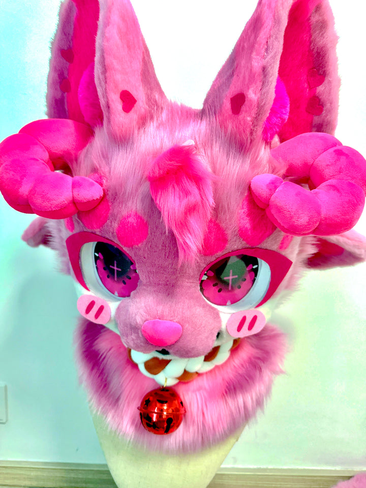 Pink Goat Kemono Head Fursuit (Gift Handpaws+Tail)