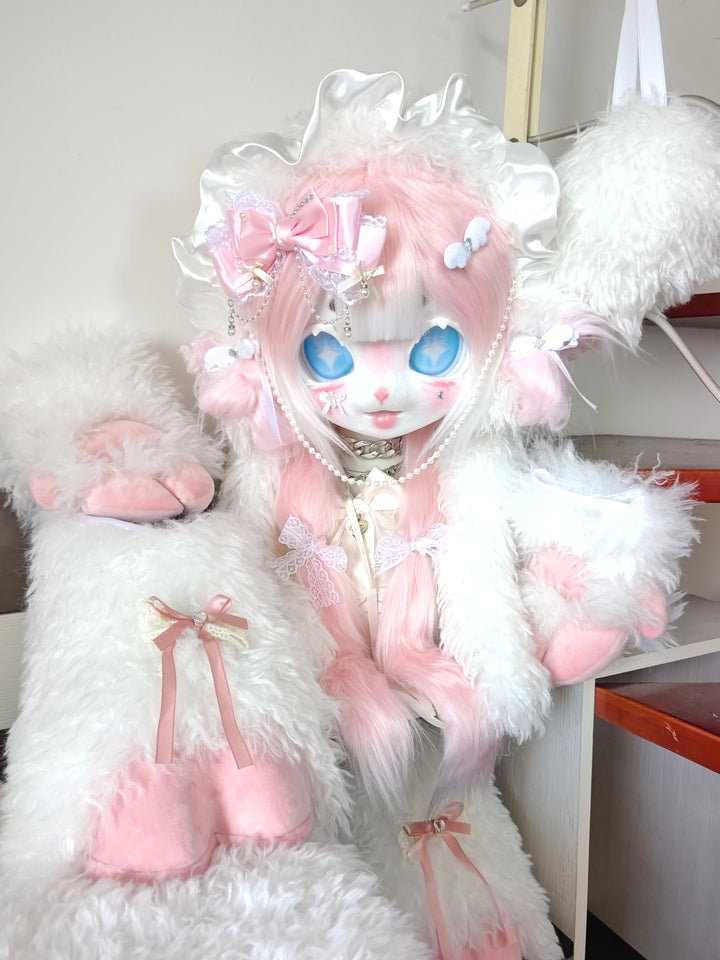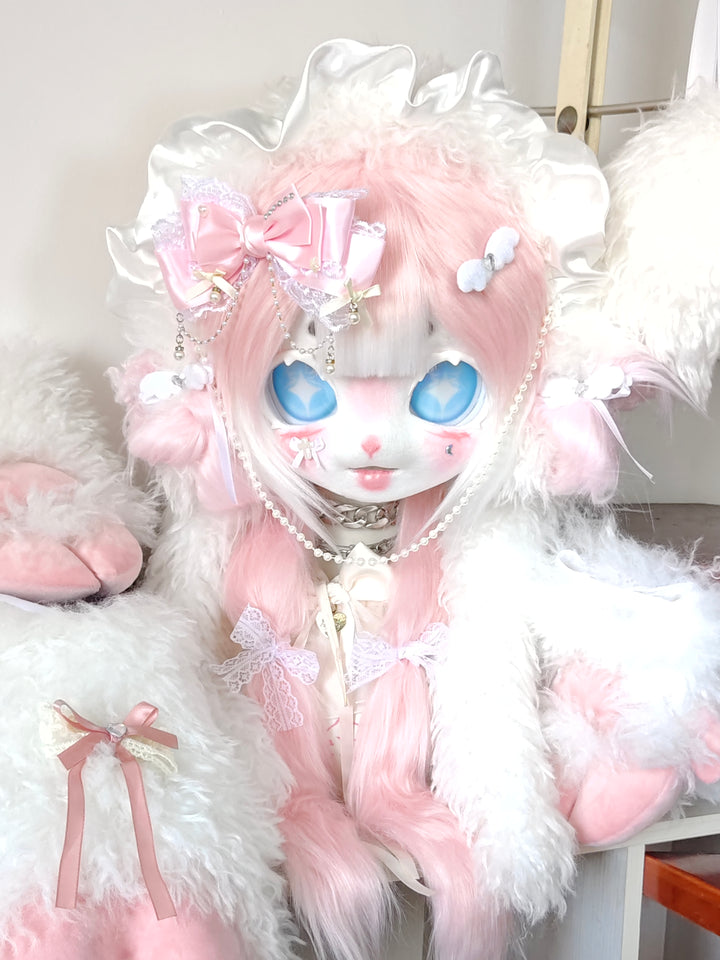 Pink Lamb Kig Head Fursuit (Gift Handpaws+Feetpaws+Tail)