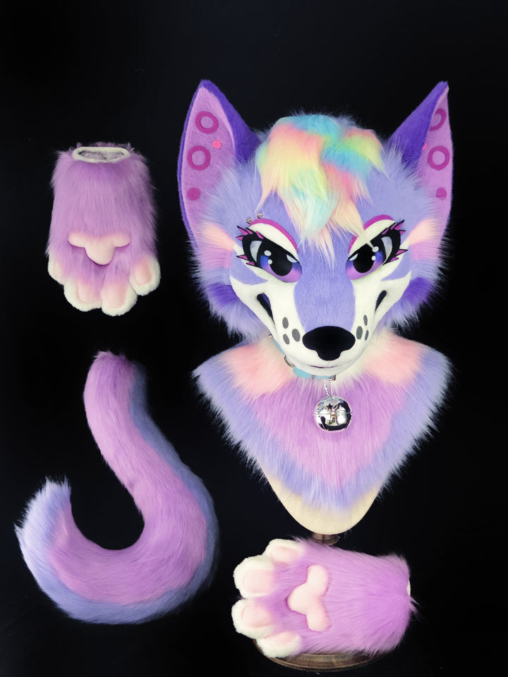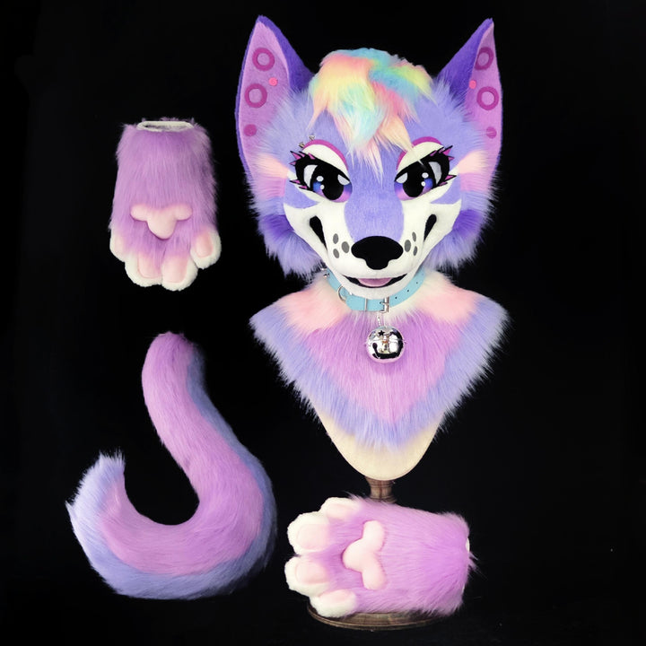 Purple Rainbow Fox Toony Head Fursuit (Gift Handpaws+Tail)
